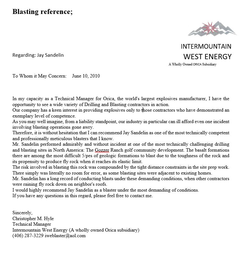 We are proud to be one of the few licensed blasters in the State of Montana with Notice of Clearance to “transport, ship, receive, possess (store)”.